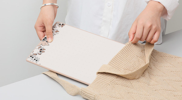 製品本体はわずか8.4mmのコンパクトボディであるKIZUNAは極薄でスタイリッシュなデザインで約415gと軽く、持ち運びもスムーズである。右利きでも左利きでも使用可能な左右対称デザインを採用し、よりよい体験ができる。